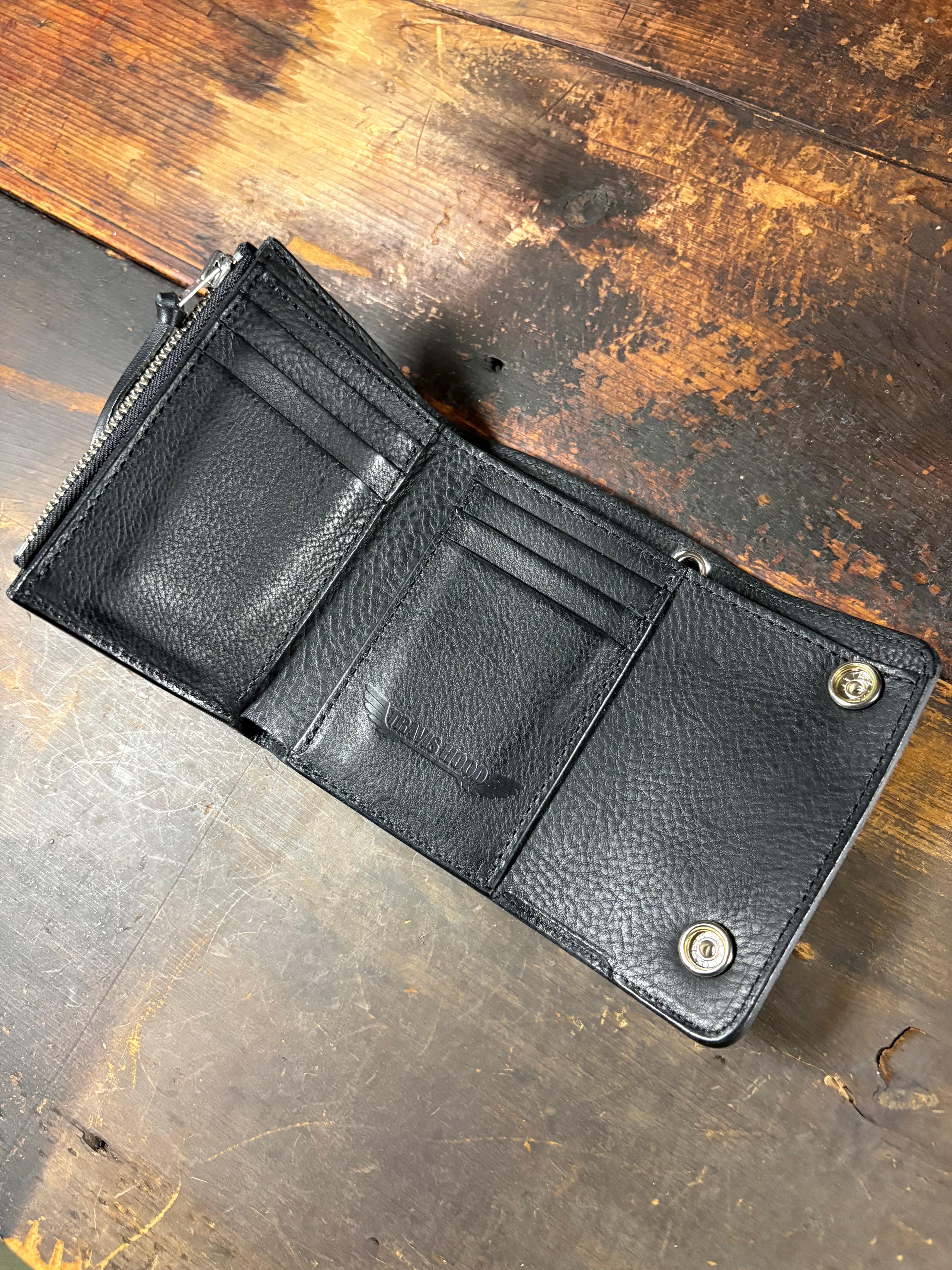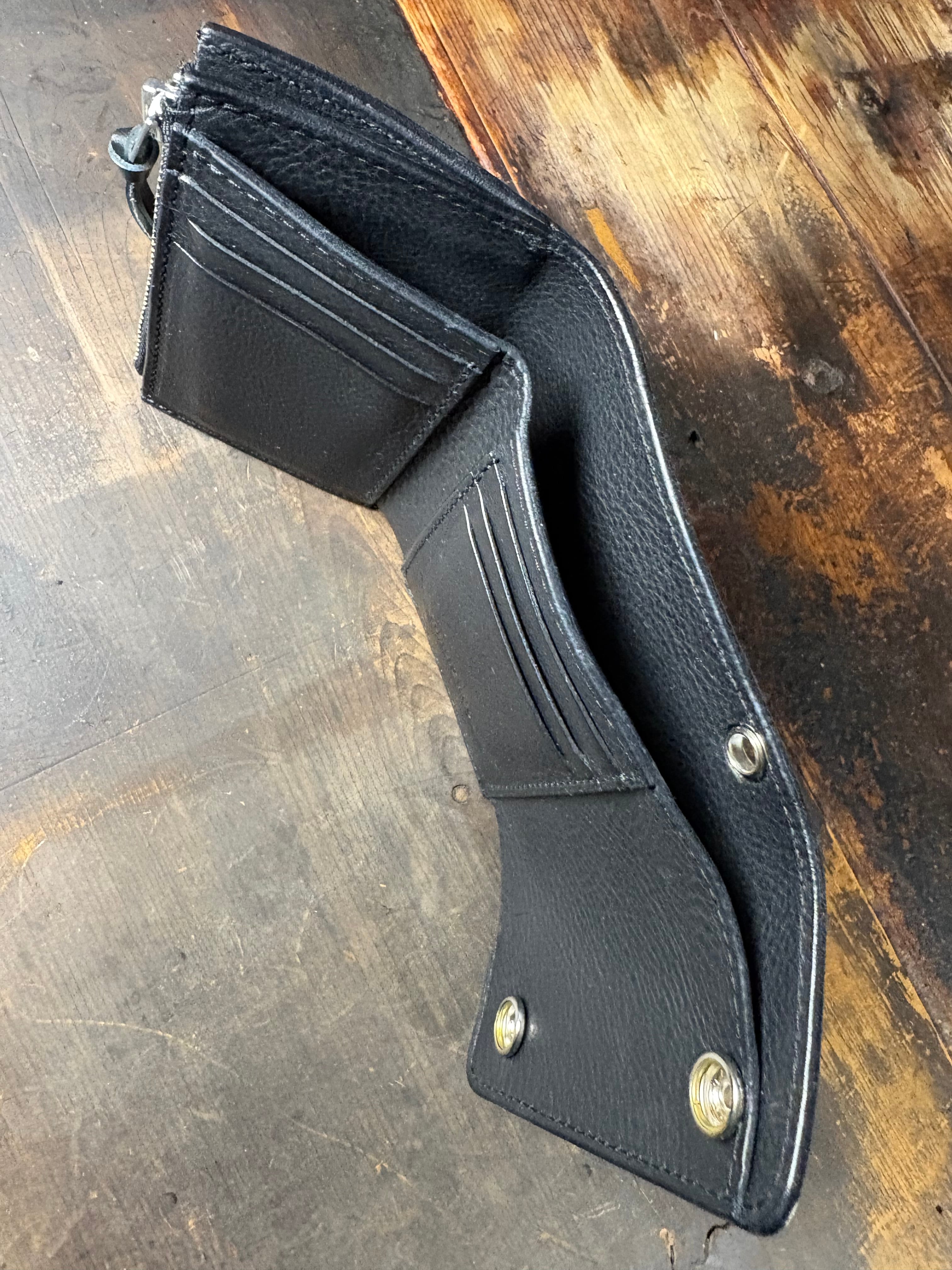 ウォレットチェーンの取付のハトメもあるので、お好きなチェーンでカスタムできます。