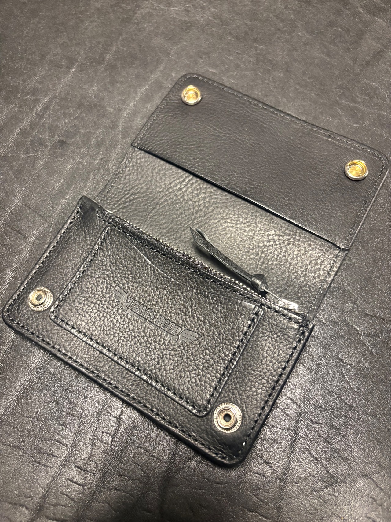 ウォレットチェーン取付けのハトメ穴の有無は無料オプションで選択頂けます。