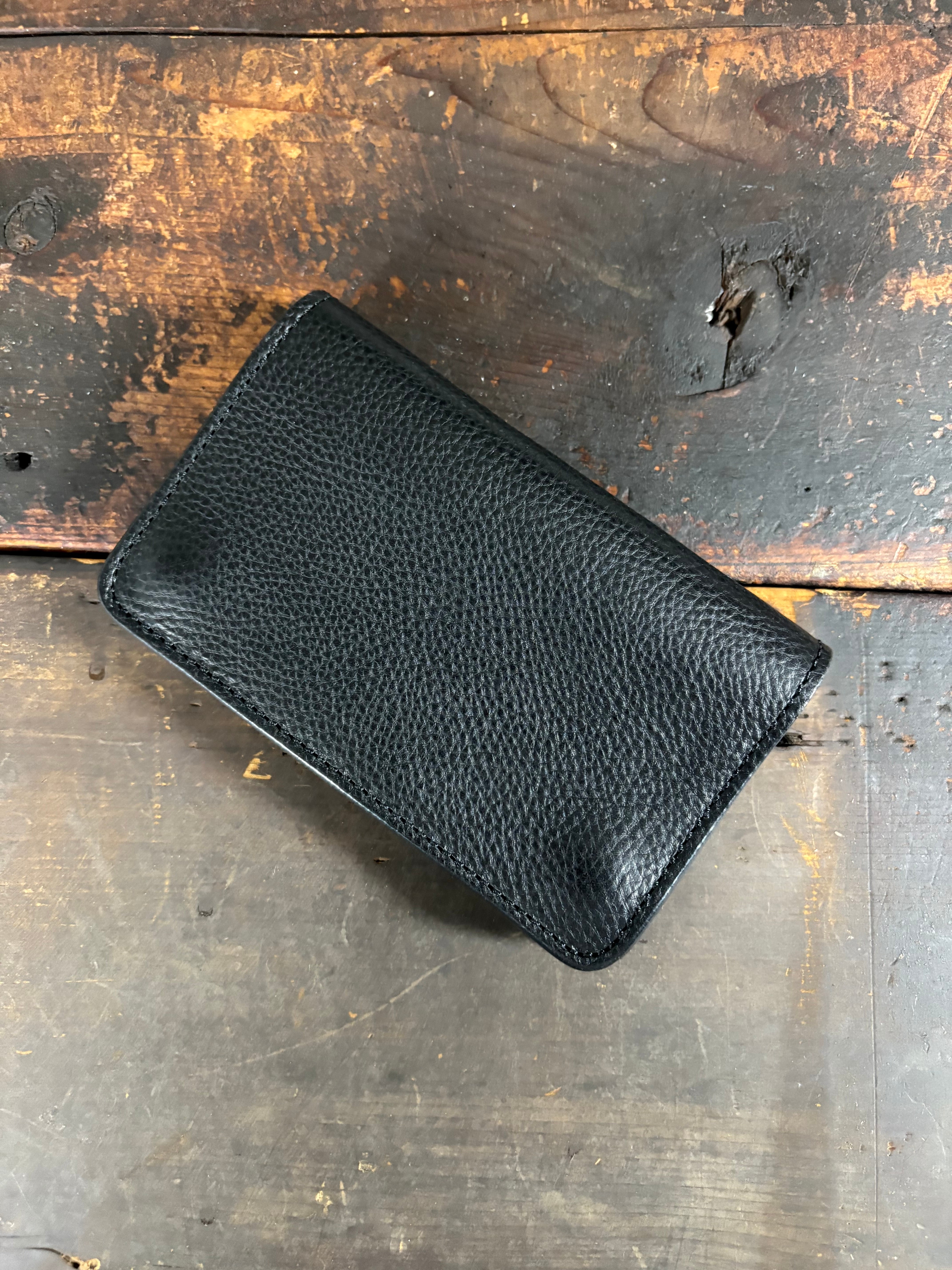 サイズ感が丁度よいミドルサイズのトラッカーウォレットです。フリーポケットをうまく活用すれば1万円札も折らずに収納可能です。フリーポケットにもカードが多く入りますので、うまくご活用頂ければと思います。